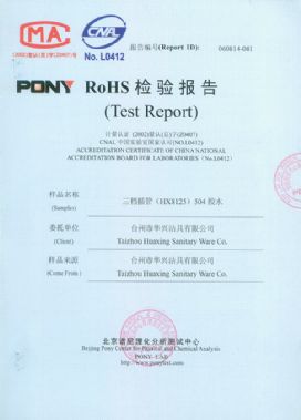 RoHS 证书 三档插管(HX8125)504胶水