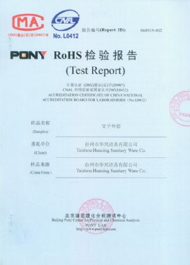 RoHS 证书 三档插管(HX8125)标记