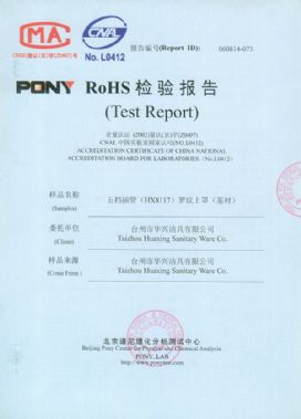 RoHS 证书 五档插管(HX8117)罗纹上罩(基材)