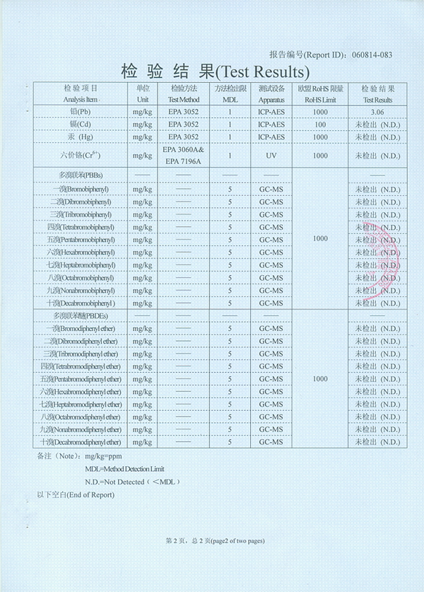 RoHS 证书 三档插管(HX8125)厌氧胶水