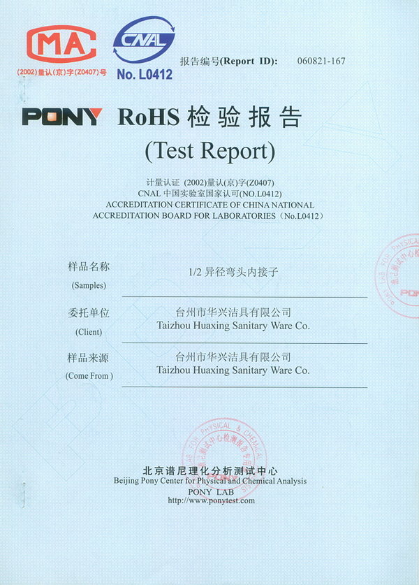 RoHS 证书 1/2异径弯头内接子